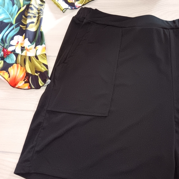π For Her: Floral Printed Irregular Lace-Up Shirt & Shorts Set
