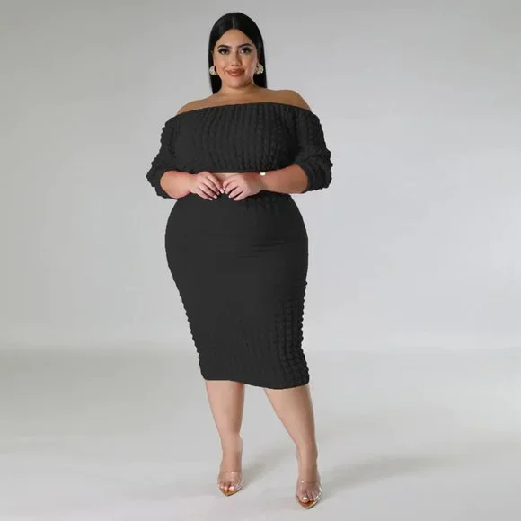 Be the first to review “Plus Size Autumn Set One-Character Collar Solid Color Bubble Two-Piece Set”