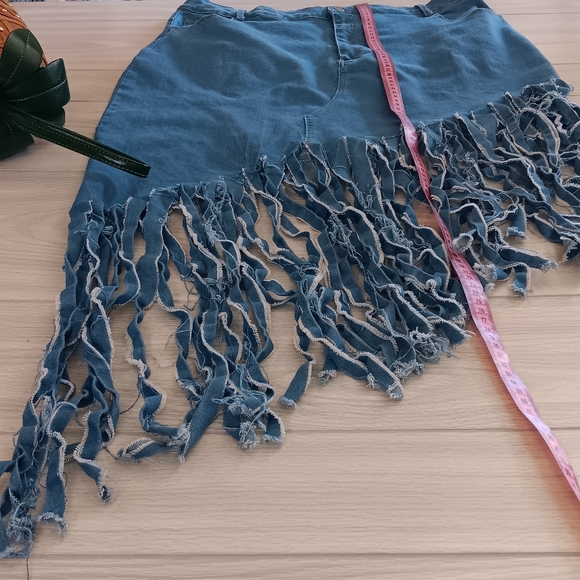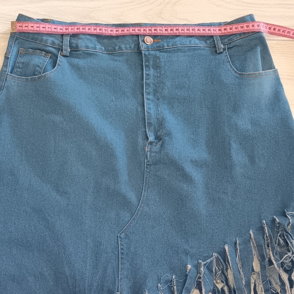 - Item: Womenβs Plus Size Fringed Denim Skirt