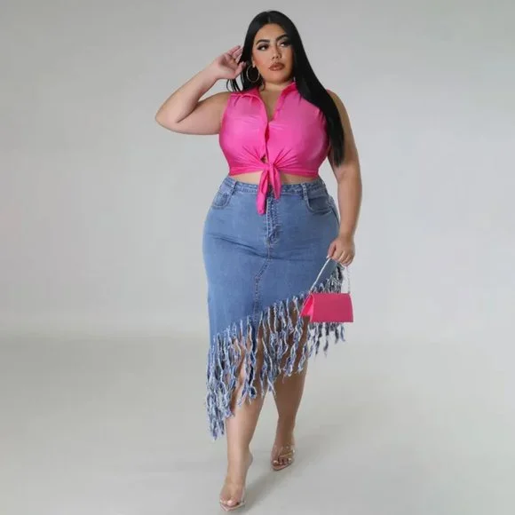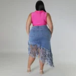 Women Fashion Plus Size Fringed Denim Skirt