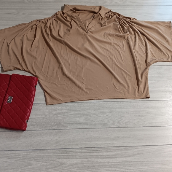 Plus Size Autumn Set One-Character Collar Solid Color Bubble Two-Piece Set